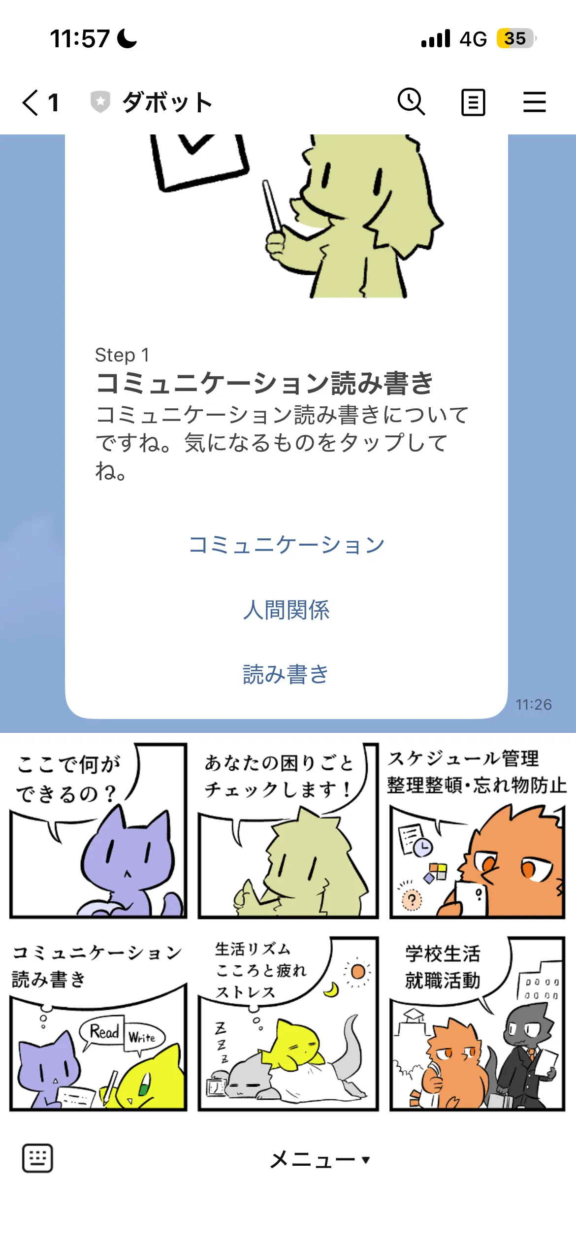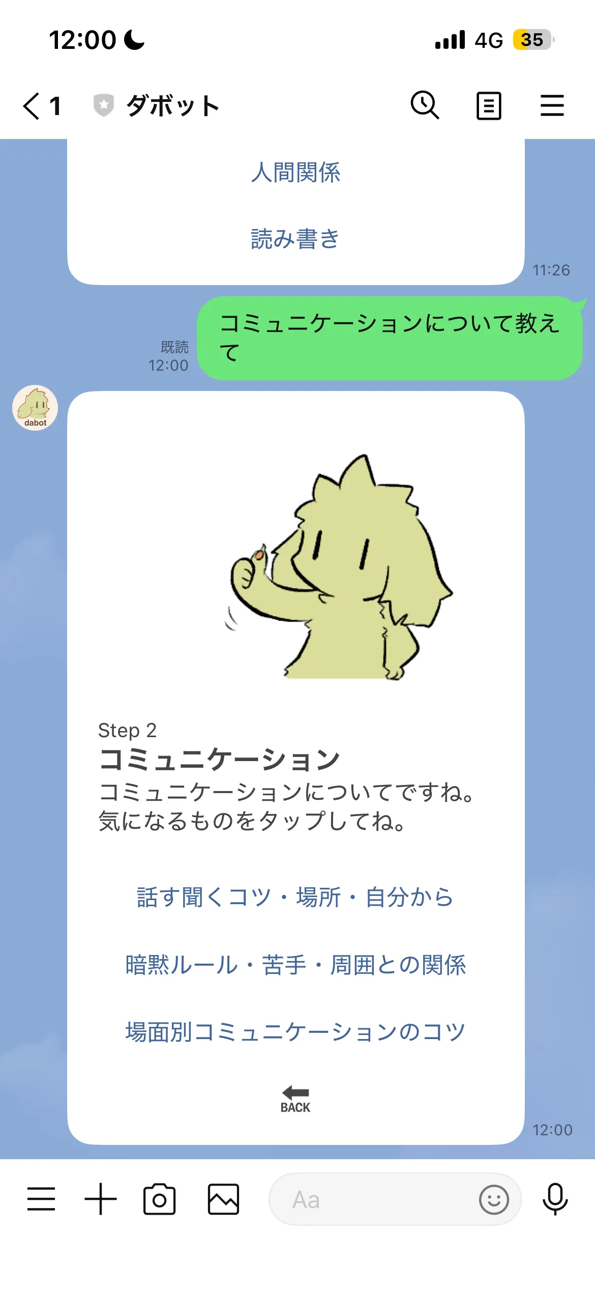 説明文中のリンク(青文字、または下線つきの部分)をタップすると、LINE のトーク画面に戻ります。