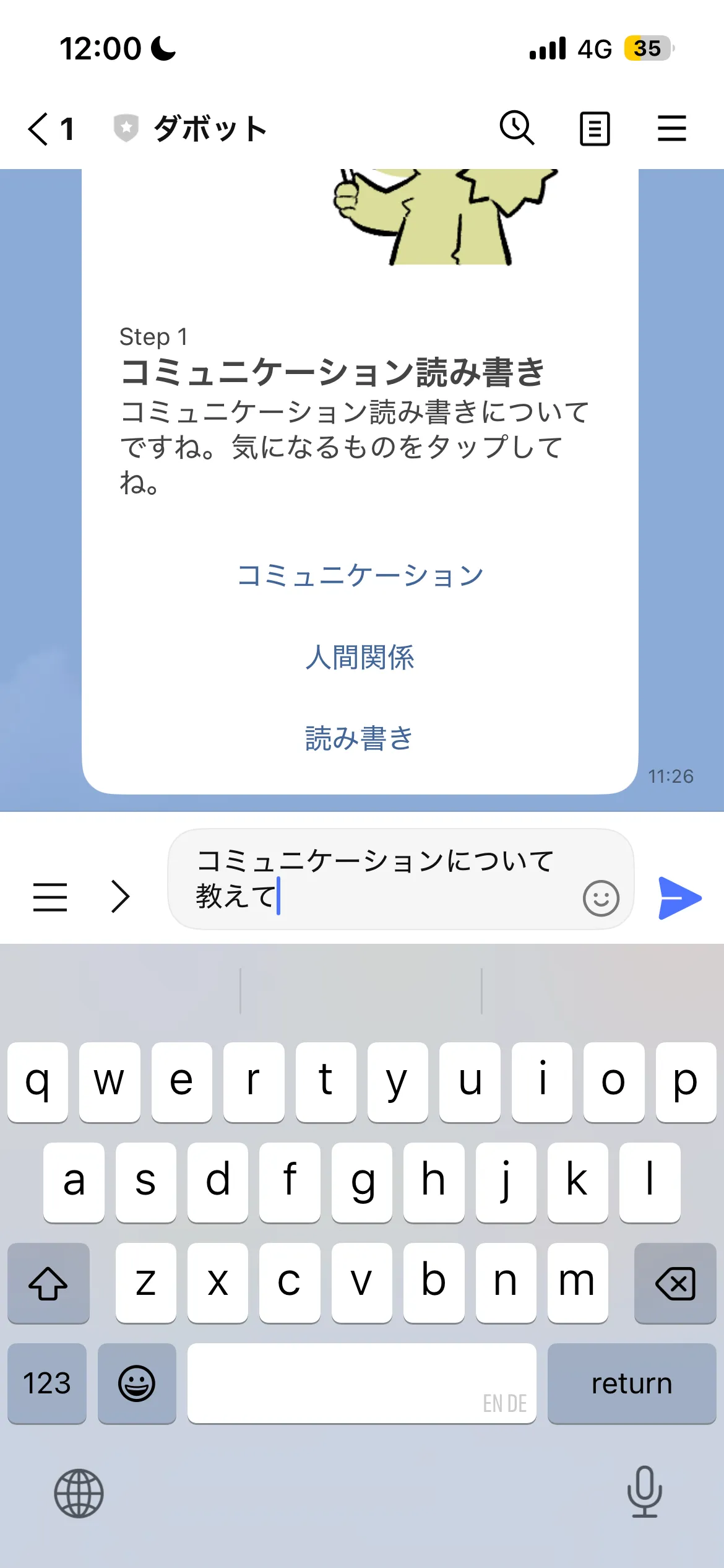 質問に対する回答をタップ