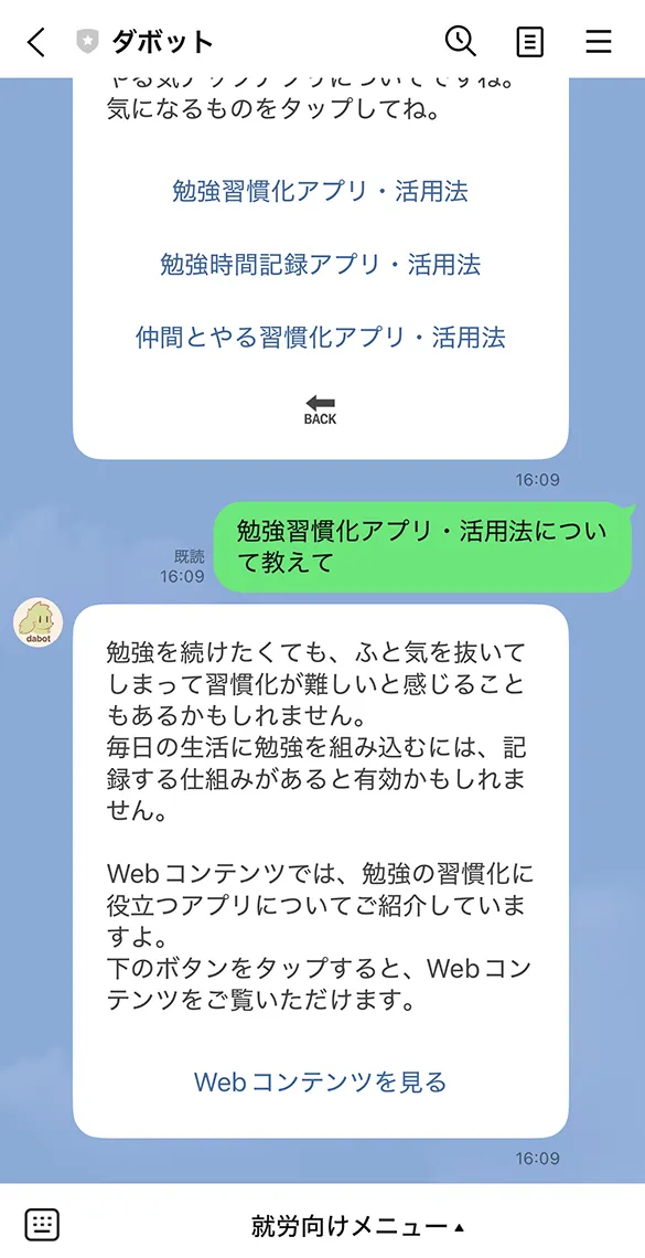 ダボットから、さらに絞り込むためのいくつかの選択肢が提示されます。