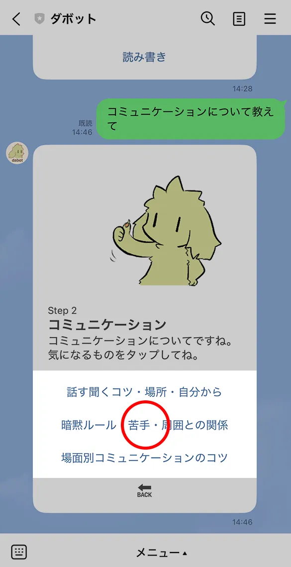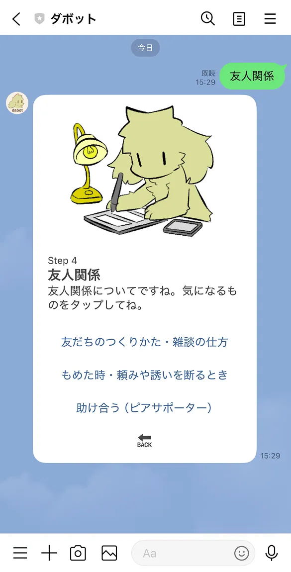BACKボタンをタップすると、前の選択肢に戻ることができます。